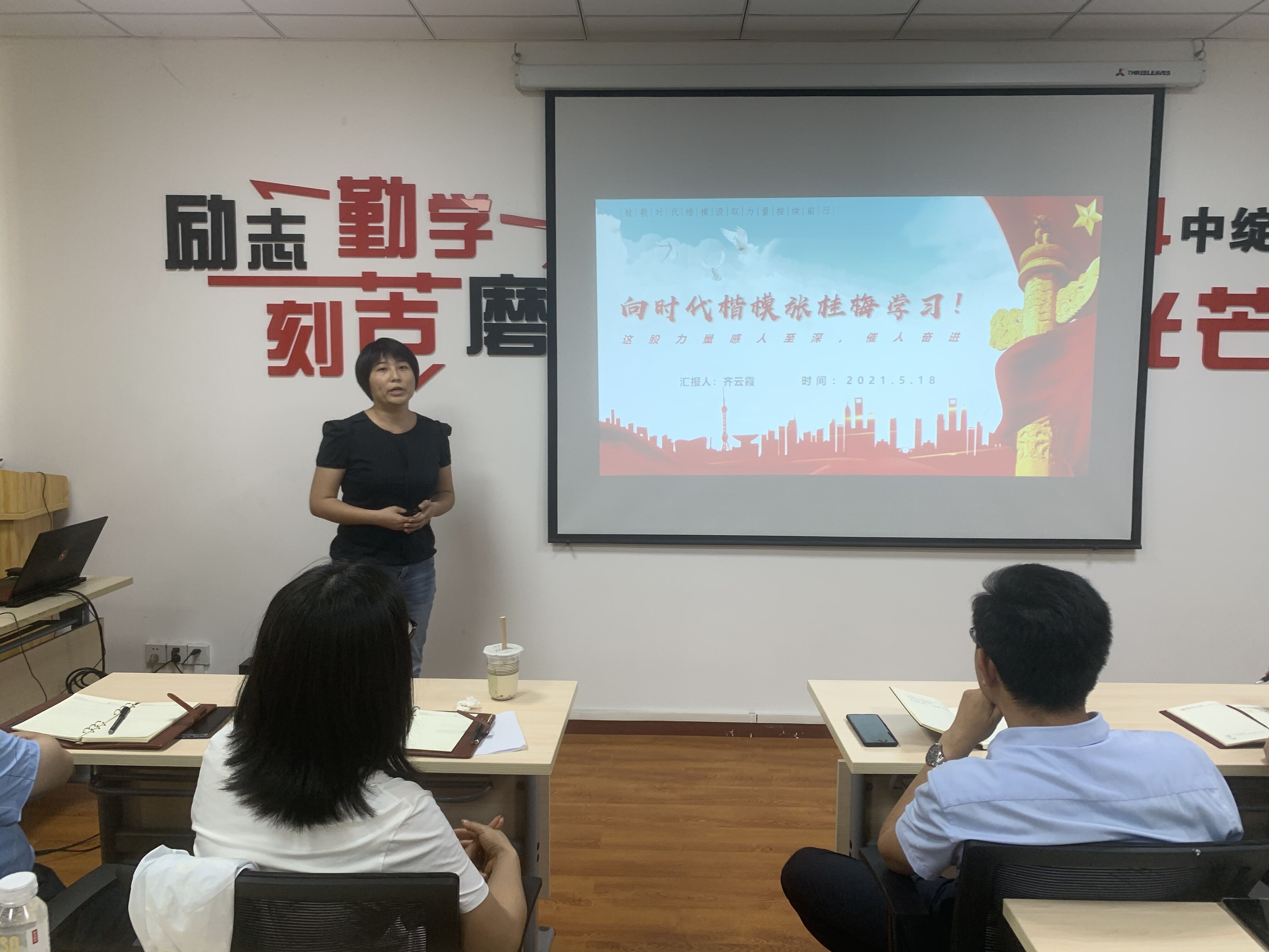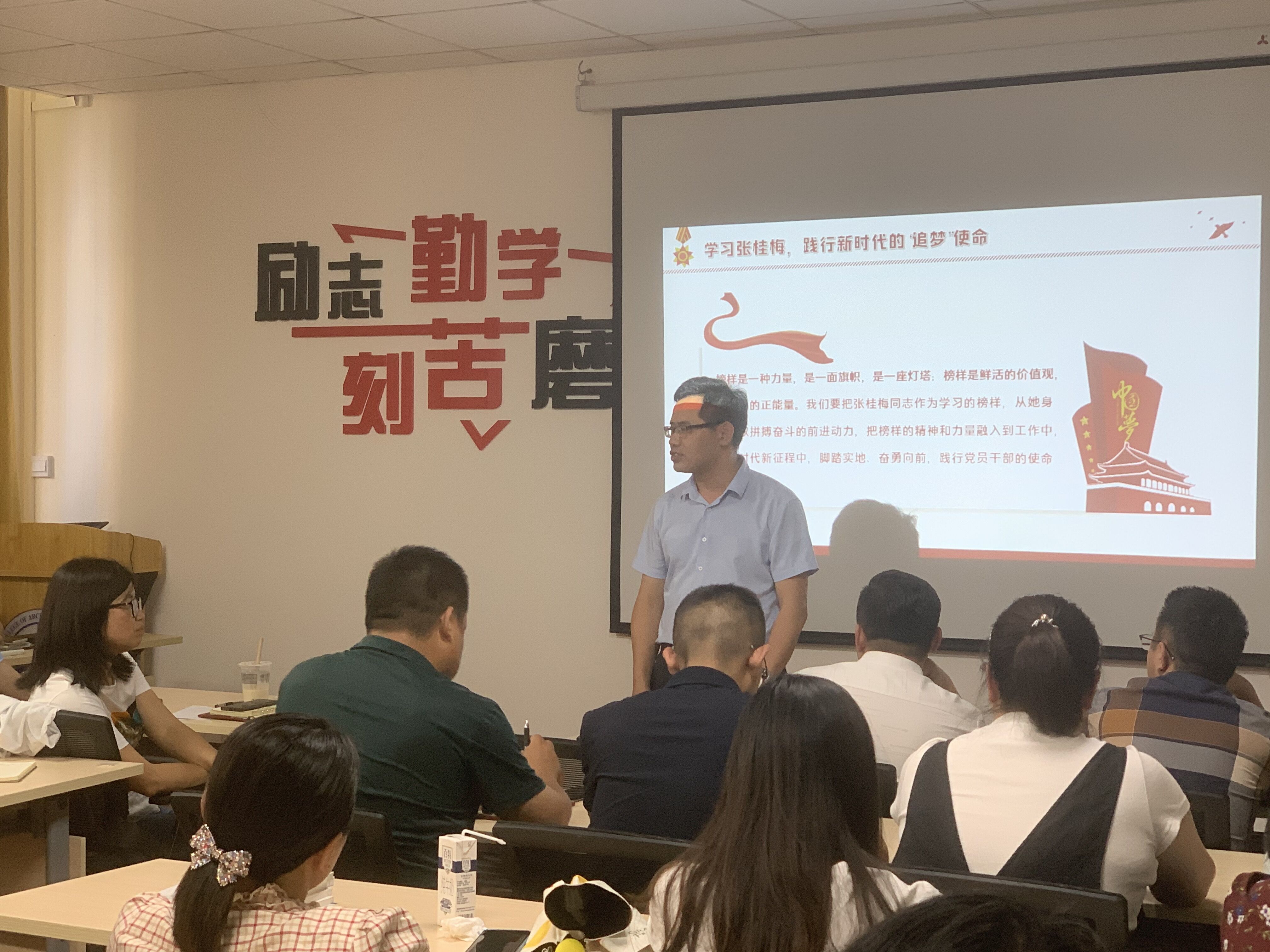 课堂上,齐书记通过一则视频让大家了解到张桂梅同志一天的工作情况,使得大家深受感动。接着齐书记从三个方面致敬时代楷模张桂梅、以张桂梅为标杆,争当最美奋斗者、学习张桂梅,践行新时代的“追梦”使命。为我们介绍了张桂梅同志的生平。这让我们了解到一个伟大的教育工作者数十年如一日投入到教书育人的平凡事业中的先进模范事迹。齐书记谈到作为教育事业的点灯人,我们应以张桂梅同志做标杆、为榜样、在教育事业中贡献一份自己的力量,为党和人民的事业中实现自己的人生价值。最后齐书记讲到三点干部责任:一是“苔花如米小,再小也有梦想”在基层教育工作中辅导员的重要性,让学生成长成才。二是“筑梦之路,风雨常伴”在推进工作中要攻坚克难,同频共振,排除万难。三是“唯有多用情”,作为一名教育工作者对待学生要成为他们的人生导师,对学生因材施教真正的成长成才。