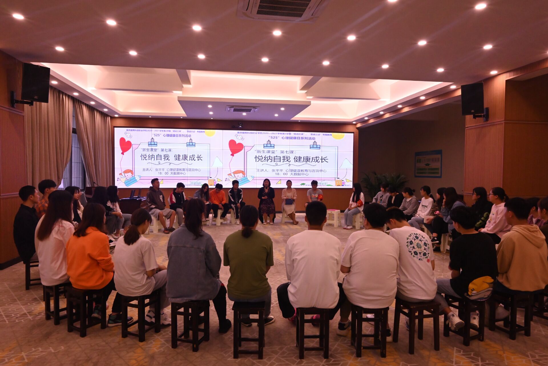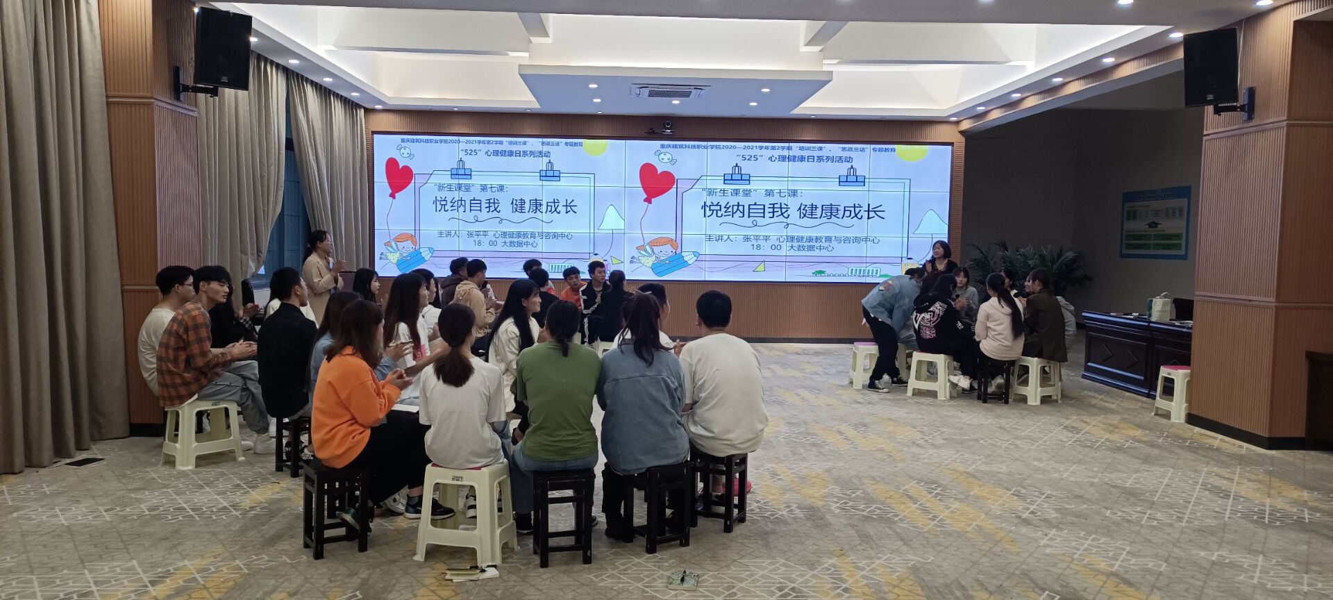 5月25日是全国大学生心理健康日,“525”谐音“我爱我”,意在提醒大学生“珍爱生命,关爱自我”。为营造校园健康成长氛围,教导学生悦纳自我能力,2021年5月25日校党委学工部在大数据中心开展“新生课堂”第七课:悦纳自我,健康成长团体辅导活动。本次活动的主讲人是心理咨询中心的张平平老师,学校副校长李果、学工部部长冉小平、辅导员代表、学生代表共同参与。