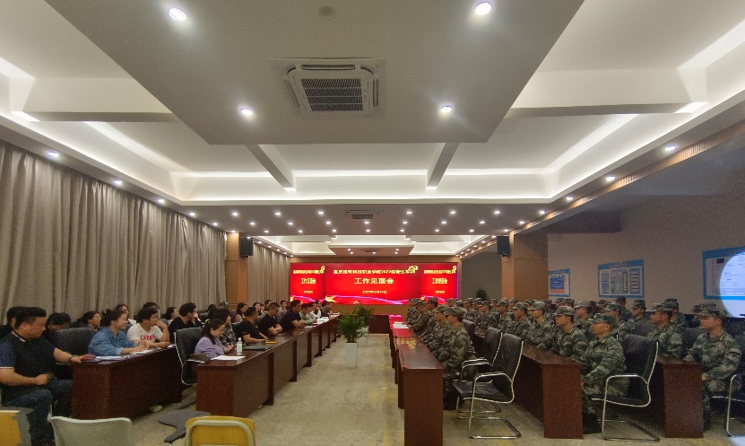 为进一步深化2022级学生军训工作,夯实军训工作、牢筑思想基础,2022年4月14日20:00重庆建筑科技职业学院2022级学生军训工作见面会在大数据中心召开。本次见面会由武装部李文政老师主持,学工部部长冉小平、学工部副部长谭周财、军训团团长王贵存以及全体教导员、指导员、教官参加本次会议。