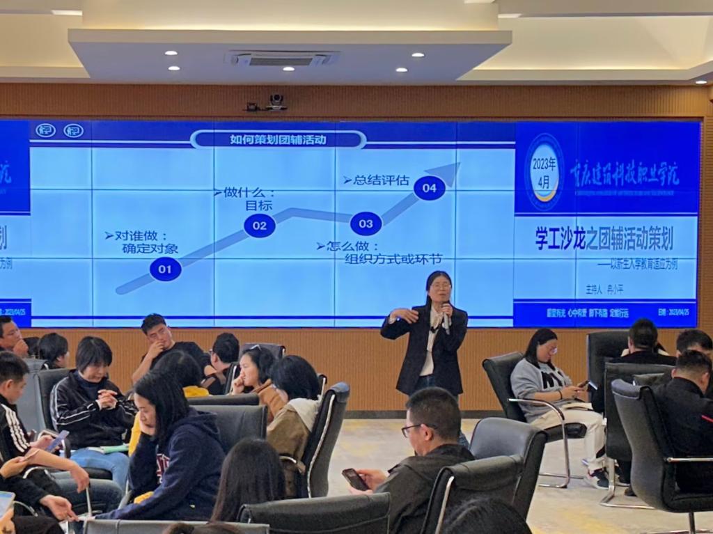 为进一步提升辅导员专业素养和职业能力,由学校学工部组织的“学工沙龙之团辅活动策划——以新生入学教育适应为例4月25日14:00在大数据中心开展本次沙龙由学工部部长冉小平主持,学校副校长李果出席本次活动,各二级学院书记、专兼职辅导员以及学工部全体成员参加。