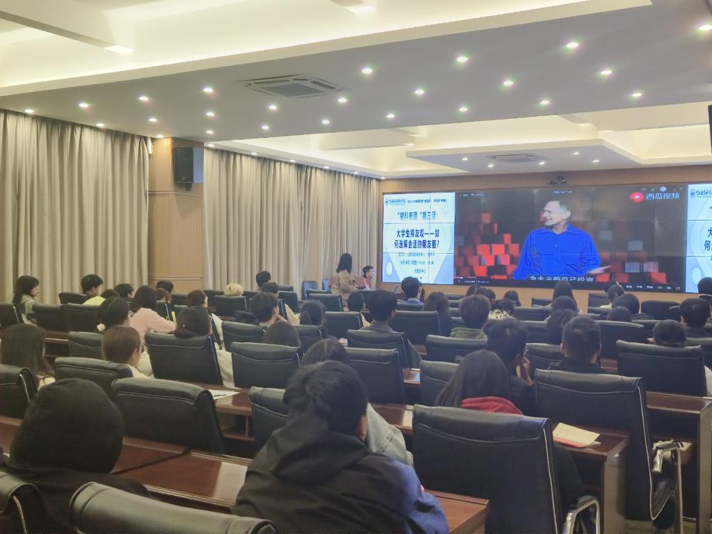 2023年11月16日18:00,学校学工部在2023-2024学年第一学期组织的“建科夜话”第三话专题讲座在大数据中心举行,心理咨询中心张平平老师以“大学生的择友观——如何选择合适的朋友圈”为题进行讲座,值班书记、辅导员以及在校学生代表共90余人参与。