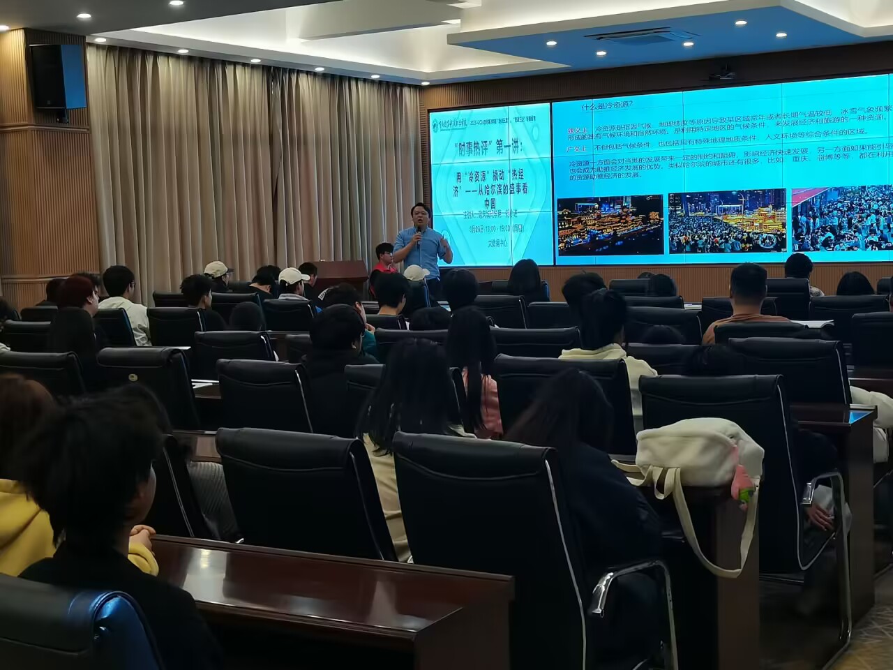 2024年3月28日18:00,学校学工部在2023-2024学年第二学期组织的“时事热评”第一讲专题讲座在大数据中心举行,建筑城规学院专职辅导员刘小进以“用‘冷资源’撬动‘热经济’——从哈尔滨的盛事看中国”为题进行讲座,值班书记、专职辅导员以及在校学生代表共90余人参与。