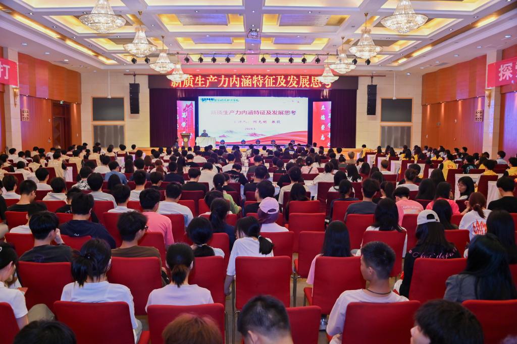 2024年5月22日14:00,学工部在2023-2024学年第一学期组织的“新质生产力内涵特征及发展思考”专题讲座在学术报告厅举行,由校党委书记何光明教授主讲,副校长李果、全体书记、专职辅导员及学生代表共400余人参与。