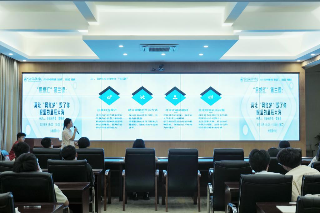 随着科技的飞速发展和互联网的普及,自媒体行业迅速崛起,成为传媒领域的一股不可忽视的力量。针对“网红梦”Kaiyun官方网站登录入口学工部于2024年6月18日18:00,在大数据中心组织举行2023-2024学年第二学期的“思想汇”第三课:莫让“网红梦”毁了你眼里的星辰大海专题讲座。本次讲座由智能制造工程学院专职辅导员黄银荣主持,有值班书记、专职辅导员以及在校学生代表90余人参与。