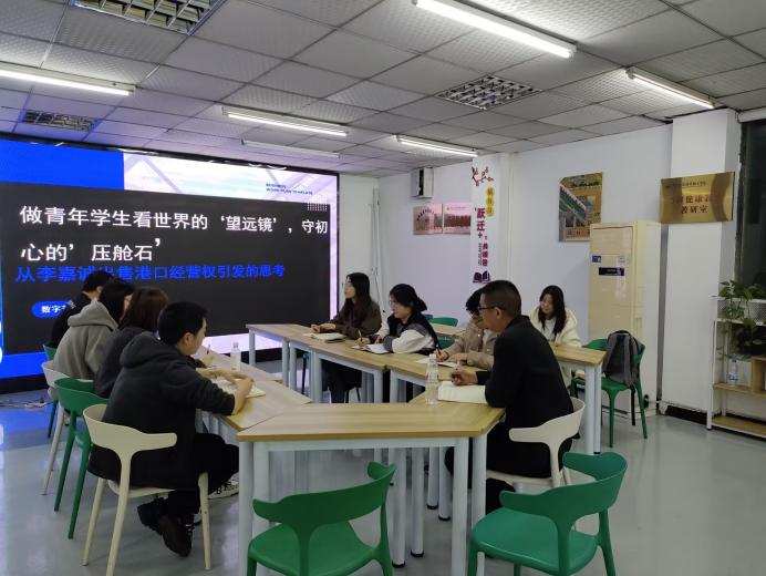 首先,主持人老师用一个视频向辅导员们介绍了一个近期热议的话题,“李嘉诚出售港口经营权” 展现战略调整,通过优化资产、布局科技与新能源规避地缘风险,顺应港口数字化趋势,降低重资产压力,体现其风险控制哲学及二代管理层轻资产逻辑,为传统产业转型提供实践样本。主持人老师希望通过结合近期时事,打开同学们的认知维度,培养同学的洞察力,学会多维度信息结果判断事物。其次,抛出讨论问题“本土情怀=封闭排外?”,问题一出就引起了辅导员老师们的讨论。辅导员们讨论得出我们需要深化理论学习,拓展国际知识,学会批判思考与多元视角看待事物,连接本土与全球之间的关系,关注国际国内新闻与趋势,学会巧妙的运用跨学科的知识,掌握国内相关的政策理论,利用全球视野,来反观本土文化。向同学们展示本土情怀并不等于封闭排外,只要我们学会如何理论的去应用,就能更好的拓宽思维,放眼世界。