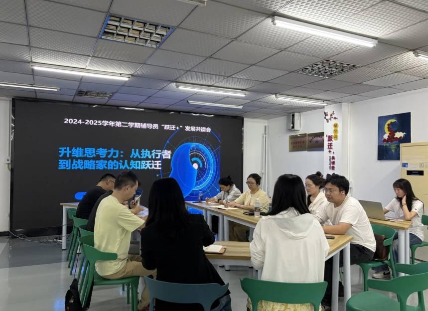 在竞争激烈、瞬息万变的教育领域,辅导员们常常面临这样的困惑:为何同样是处理学生管理、课程规划的工作,有人只能按部就班完成任务,而有人却能站在更高维度,提前预判问题、设计出系统性解决方案?答案就藏在“升维思考力”中。为了促进知识共享与交流,培养战略思维能力,辅导员发展共读会第九十三期: “升维思考力:从执行者到战略家的认知跃迁”于2025年5月6日星期二晚上八点,在一站式服务中心举行。本次共读会由学工部副处长周玟瑾主持,值班书记陈程及辅导员共同参与。