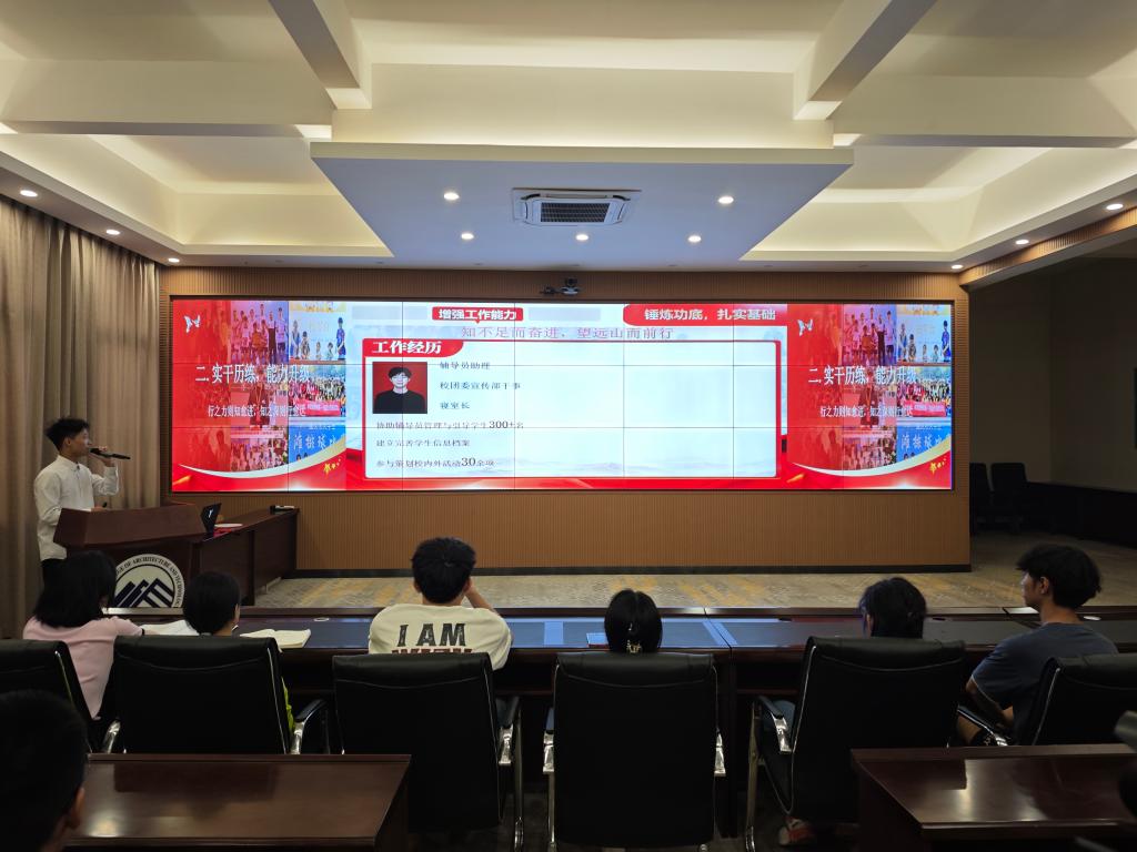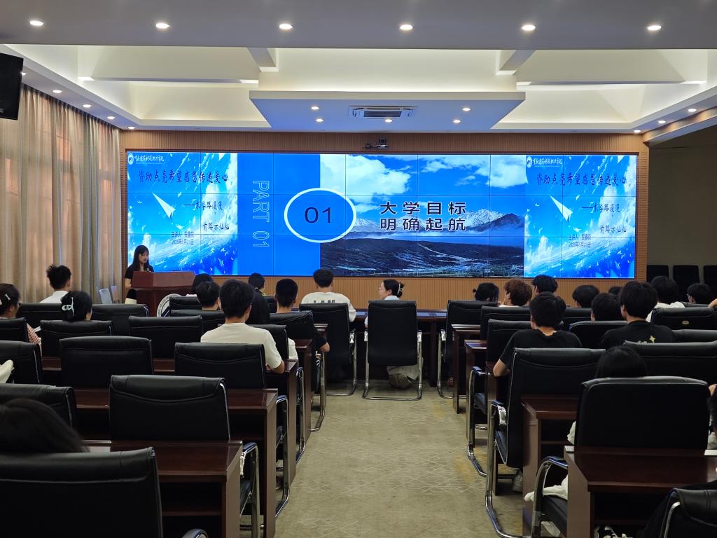 贺鑫花同学向大家分享了自己一路走来为了实现目标的不懈努力与付出。讲述了她曾经因为成绩不好被退学、普高转职高、寒暑假打工的各种的经历,以及上大学后学费生活费都靠自己努力学习拿奖学金、寒暑假打工获得,她的不懈努力和付出,锤炼了她坚毅的品质和坚持不懈的精神。她用自己的成长经历告诉大家:“人之所以能,是因为相信能”。欧阳凰同学向学弟学妹们分享了自己大学的学习、实践、比赛、志愿服务等经历与目标。以设问的方式向大家抛出问题,同时又为大家解答问题指引方向。他用自己的经历告诉大家:“行之力则知愈进,知之深则行愈达”。