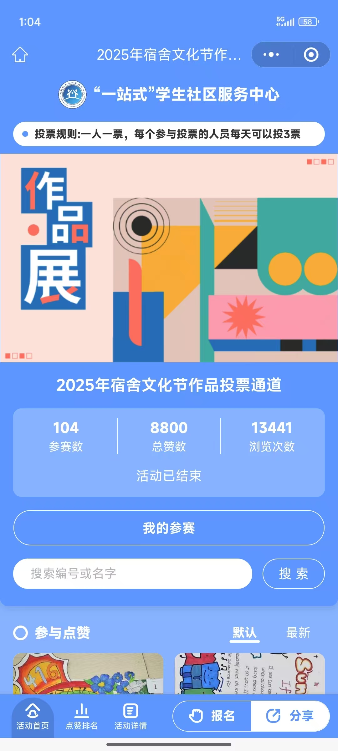 宿舍文化节作为展现青春风采的舞台、校园文化建设的生动实践,收获超高热度!线上投票通道吸引超万人浏览,累计收获8800点赞,线下展览同步开启,上千名同学参与现场投票 。结合线上线下投票结果,经严谨评定,最终选出一等奖6个、二等奖12个、三等奖18个 。从线上踊跃互动到线下佳作赏评,同学们用创意与热情,诠释对宿舍生活的用心经营,让宿舍里的温暖与力量,成为校园中熠熠生辉的青春印记,期待未来继续共赴美好宿舍文化之旅。