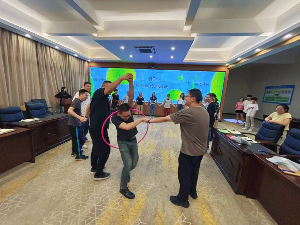 随后的“呼啦圈传递”游戏,将现场氛围推向高潮。六组队伍组成两个团队,队友们手拉手,借助身体配合感受团队的流动与节奏。面对圈体卡顿等难题,大家相互提醒、灵活调整姿势,在欢声笑语中完成挑战。肢体互动里,信任逐步建立;协作过程中,“主动担当、合力传递”的真谛也深深印刻,让大家对团队协作有了更鲜活的理解。