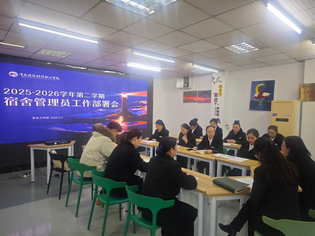 2026年3月3日,学生工作部组织召开2025-2026学年第二学期宿舍管理员工作部署会,围绕新学期宿舍管理与服务重点工作进行安排部署,学工部部长冉小平、副部长李小霞、学生处陈杰、张小艳、物业主管汤坤、以及全体宿舍管理员参加会议。