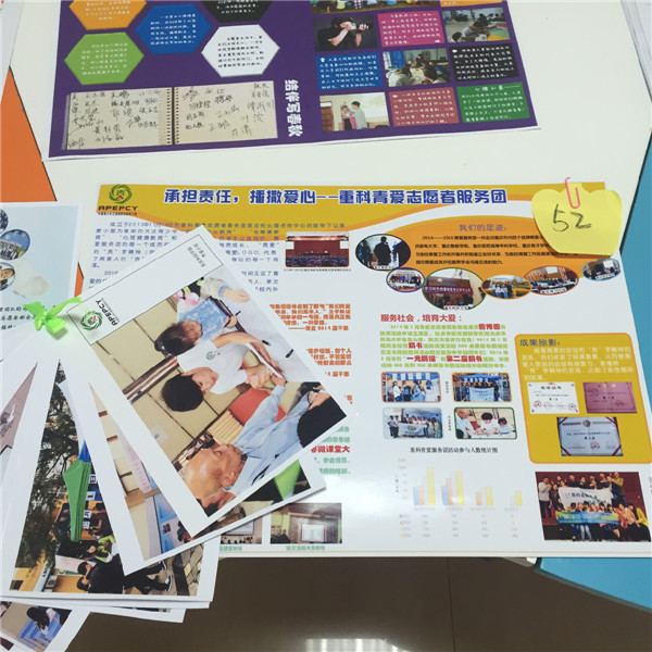 来到重庆科技学院化学化工学院心灵之家后,那里的同学们热情地为我们讲解,不仅告诉我们“三级心理之家”每幅作品的获奖等级,获奖理由,还不厌其烦地回答我们提出的各种问题,诸如学校心理协会建设情况,活动组织情况,各个部门之间的分工合作问题等等。他们主办方的热情、作品的精美、活动组织的有条不紊都深深地吸引了我们,真是不虚此行。
