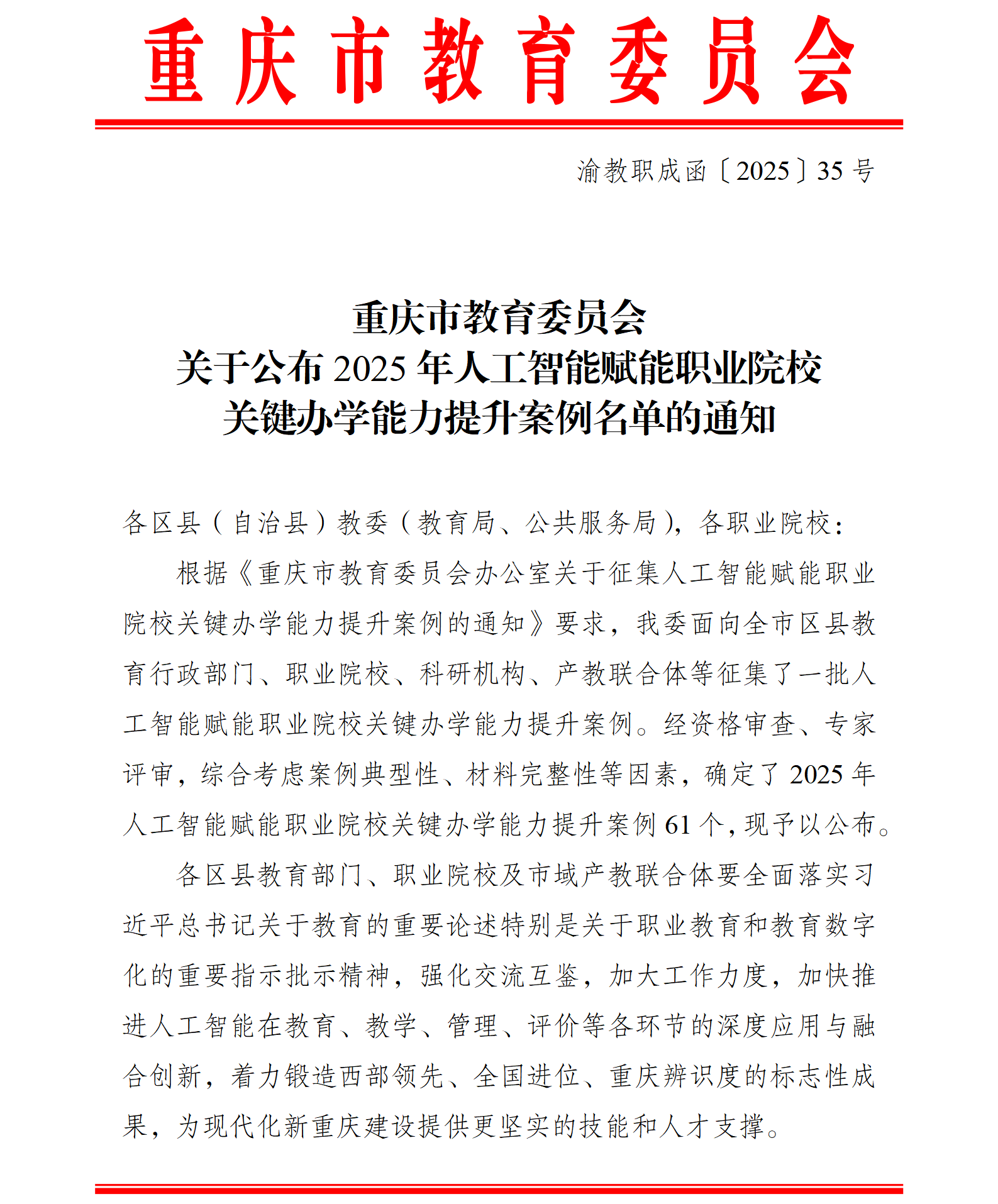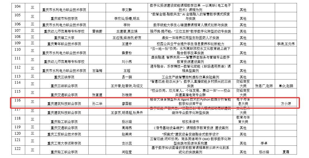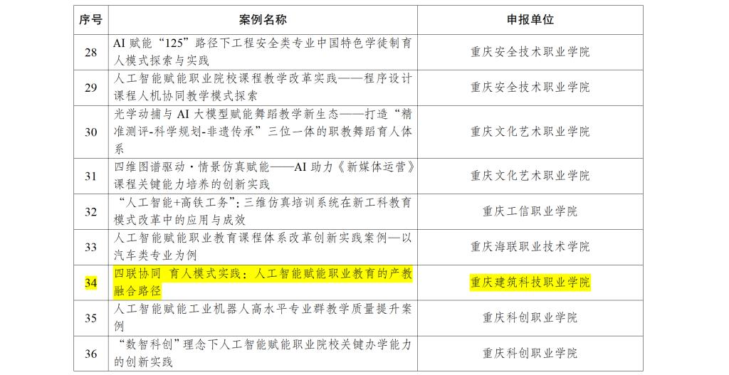 重庆市教育委员会2025年人工智能赋能职业院校关键办学能力提升案例