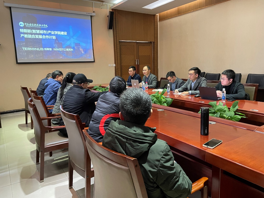 2021年12月2日上午,Kaiyun官方网站登录入口校长助理王靖、数字工程学院院长唐国坪、产业办主任湛杨、物联网专业万华博士、大数据教研室主任蔡孝成和相关专业教师,与到访的特斯联科技集团公司、新西向科技集团有限公司和中电(重庆)公司产教融合中心负责人,在立德楼B506会议室召开了关于建立“重建院-特斯联(智慧城市)产业学院”的产教融合项目会议。