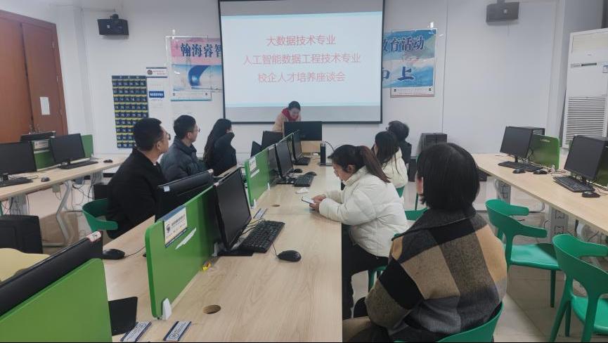 会上,教研室主任廖国敏教师首先解读了新版国家标准中培养目标的核心变化,强调需“培养具备大数据处理、分析及实践能力的高素质技能人才,强化创新意识、跨学科整合能力及职业素养”。对照这一要求,与会人员结合瀚海睿智大数据公司提供的行业调研信息,分析了当前企业对人才能力的需求趋势,主要包括数据采集与预处理、分布式计算等核心技术能力。专业教师与企业专家针对原有培养方案进行了逐项讨论。为落实“产教融合”理念,经全体校方和企业方教师同意,会上提出调整了《linux操作系统》等课程的课程定位。校企双方还就“岗课赛证”融通培养模式达成共识,通过定期组织学生参与企业项目实战、行业竞赛等活动,提升其就业竞争力。学院教师则从教学实施角度提出,需加强实验室资源建设,搭建与行业接轨的大数据平台环境,确保理论教学与实操训练同步推进。