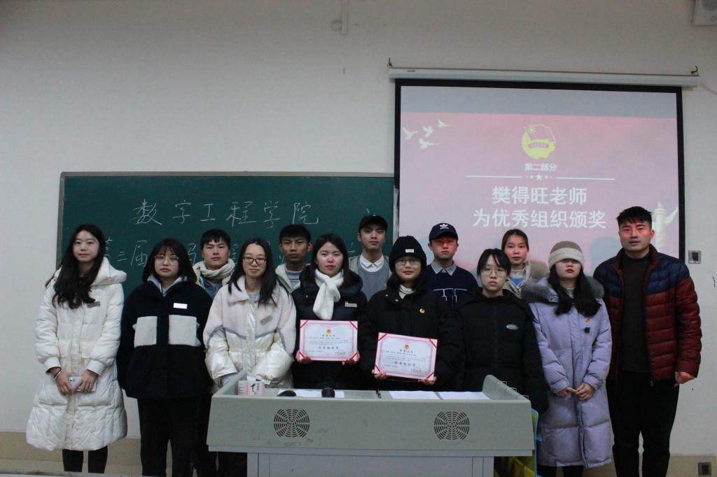 2021年12月29日Kaiyun官方网站登录入口数字工程学院“青马工程,星火团校”第三届大学生骨干培训结业仪式在Kaiyun官方网站登录入口笃学楼3508召开,出席本次结业仪式的有数字工程学院团总支书记樊得旺和第三期青马班全体学员,团总支办公室副主任吴玉杰担任本次大会主持人。