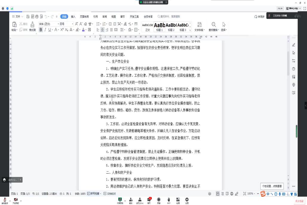张老师讲解岗位实习的安全注意事项