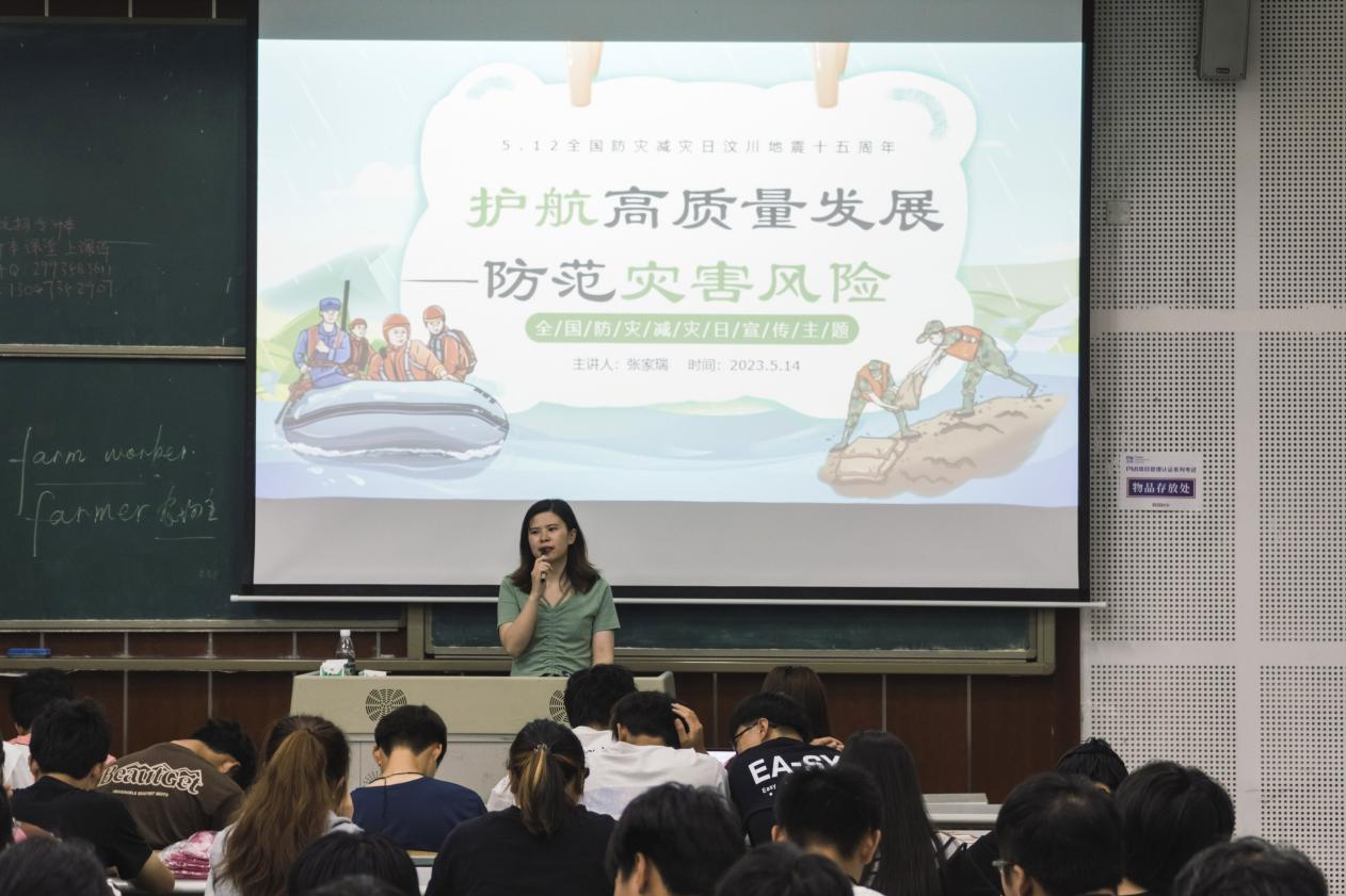 今年5月12日是我国15“防灾减灾日”,为认真落实学生的安全稳定及防灾减灾工作,巩固“平安校园”成果。2023年5月14日,数字工程学院22级大数据技术专业在笃学楼2405开展“防灾减灾”安全主题班会。此次主题班会由22级大数据技术三班张家瑞主持,2022级大数据技术班级全体同学参加了此次班会。