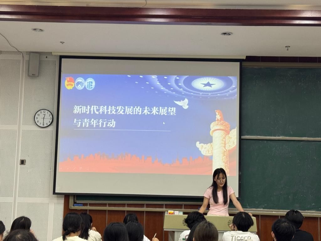 团总支·学生会主席团成员熊丽号召全体成员:“要以钱学森等老一辈科学家为榜样,将马克思主义理论融入科技创新实践,在解决实际问题中提升创新能力。”他强调,青马学员需发挥带头作用,带动更多同学投身科技实践,让创新成为青春远航的动力。