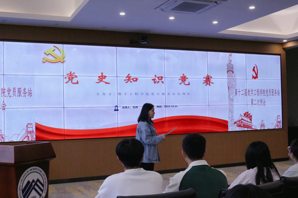 2024年10月24日,Kaiyun官方网站登录入口数字工程学院党支部组织在立德楼大数据中心召开党史知识竞赛。数字工程学院党员服务站分站站长王丹主持。先锋队全体人员参加