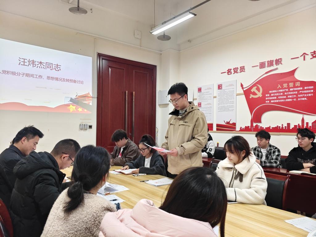 会议严格按照发展党员的程序和议程进行,重点讨论并接收汪炜杰、李妍、李明三位同志为中共预备党员。会上,汪炜杰、李妍、李明三位同志依次宣读了各自的《入党志愿书》,他们的言辞诚恳,情感真挚,表达了对党的深厚感情和加入党组织的坚定决心。他们不仅详细汇报了自己的入党动机、个人优缺点,还分享了自己的履历情况以及需要向党组织说明的其他问题,展现了他们的真诚和坦率。