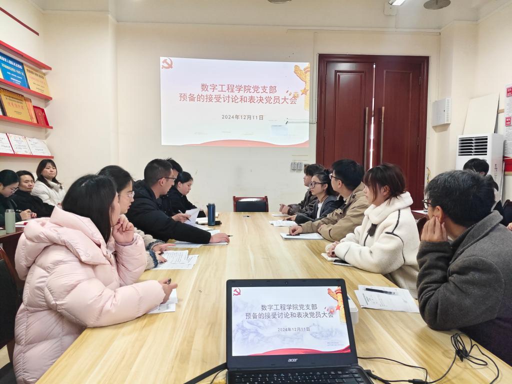 2024年12月11日13时30分,数字工程学院党支部在督学楼3512会议室召开预备党员接收大会。此次会议旨在进一步加强党员团队建设,为党组织注入新鲜血液。会议由数字工程学院党支部书记张运来同志主持,数字工程学院党支部15名党员13名出席会议。