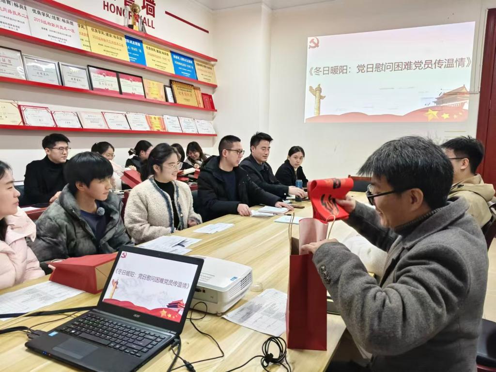 活动当天,阳光透过窗户洒满整个会议室,为这个寒冷的冬日增添了几分暖意。数字工程学院党支部书记张运来同志亲自到场,他不仅带来了党组织的深切问候,还精心准备了一系列慰问礼品,以实际行动表达对困难党员的关怀与帮助。