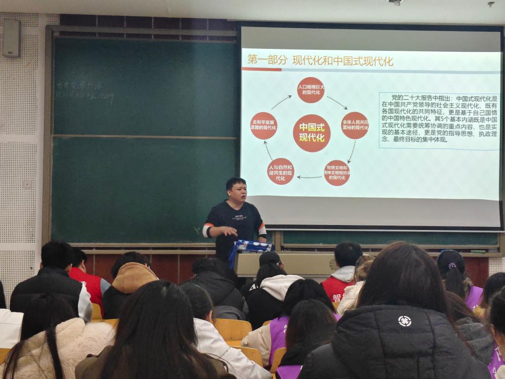 2025年3月14日,数字工程学院党支部联合智慧康养学院、智能制造学院等兄弟院系,在笃学楼2305教室举办第29期入党申请人培训第五讲。本次培训特邀数字艺术学院党支部骨干刘小进同志,以《中国式现代化》为主题展开深度讲授,百余名入党申请人、积极分子齐聚一堂,共赴一场思想与信仰的洗礼。