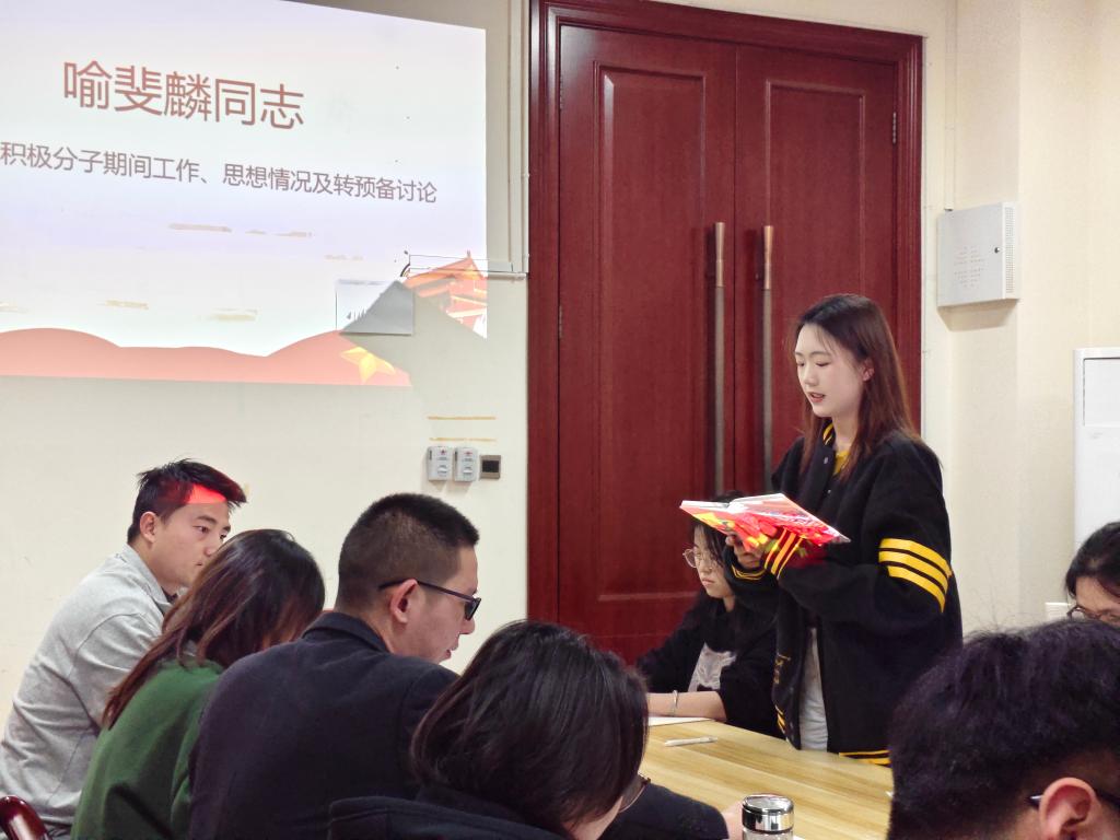 会议严格按照发展党员的程序和议程进行,重点讨论并接收陈金仪、喻斐麟、王丹、张少斌、幸亨勇五位同志为中共预备党员。会上,五位同志依次宣读了各自的《入党志愿书》,言辞诚恳,情感真挚,充分表达了对党的深厚感情和加入党组织的坚定决心。他们详细汇报了自己的入党动机、个人优缺点,分享了履历情况,并坦诚地提出了需要向党组织说明的其他问题,展现了高度的真诚和坦率。