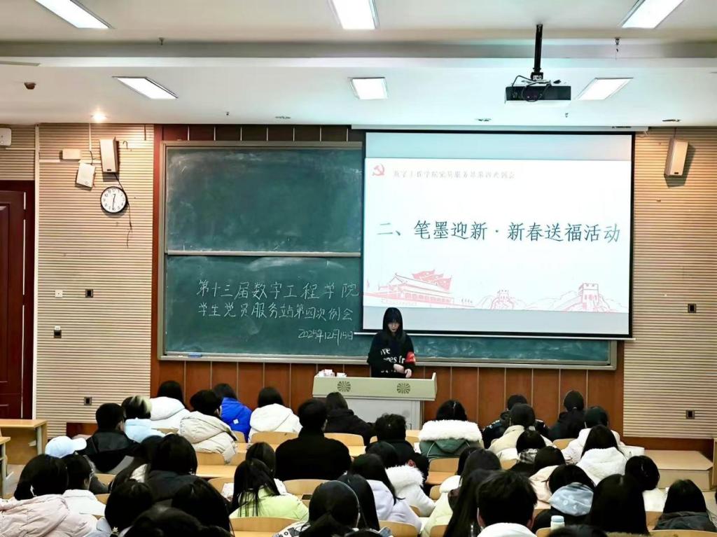 为强化党员服务站成员思想建设,明确后续工作方向,凝聚服务合力,2025年12月15日在笃学楼1205第十三届数字工程学院党员服务站顺利召开第四次例会。党员服务站全体先锋队员参会。