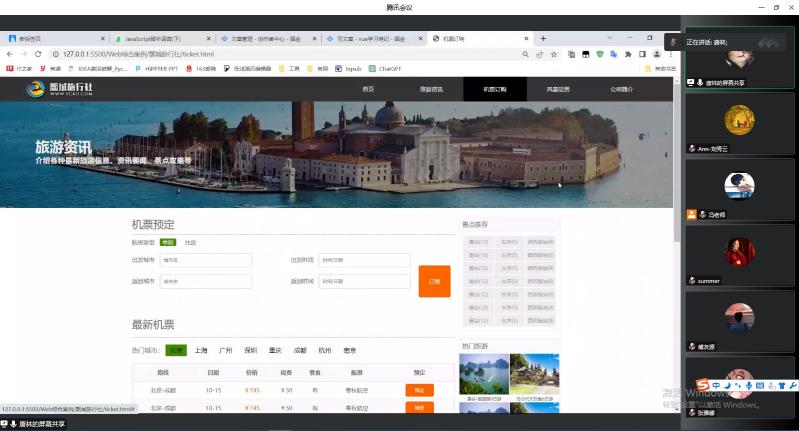 数字工程学院大数据教研室廖国敏主任、翰海睿智教学及内容研发中心方小婷部长等6名校企教师担任了此次成果展的评委。参加培训的8名同学云端竞技,纷纷向评委们展示了购物网站和旅游网站。