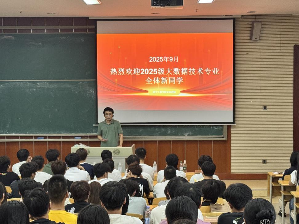 讲座由大数据技术专业教研室主任何泽鑫老师主讲。何老师围绕大数据技术专业的课程体系、核心能力培养、实训安排以及人才培养方案等方面进行了系统阐述,为新生勾勒出清晰的专业学习路径和未来发展方向。他鼓励同学们扎实掌握数据处理、数据分析与可视化等关键技术,积极投身实践,不断提升综合应用能力。
