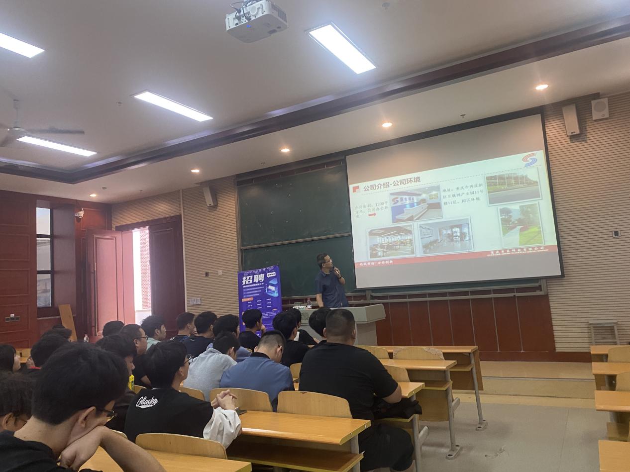 本次招聘会首先由各公司工作人员向在场同学放映本公司的视频宣传片,展示公司的发展历程和发展。随后以PPT的形式就公司的一些规章制度,福利待遇,企业文化,现有产业战略,组织构架,人力资源政策等几个方面向同学们做了概括,并现场解答同学们的疑问。
