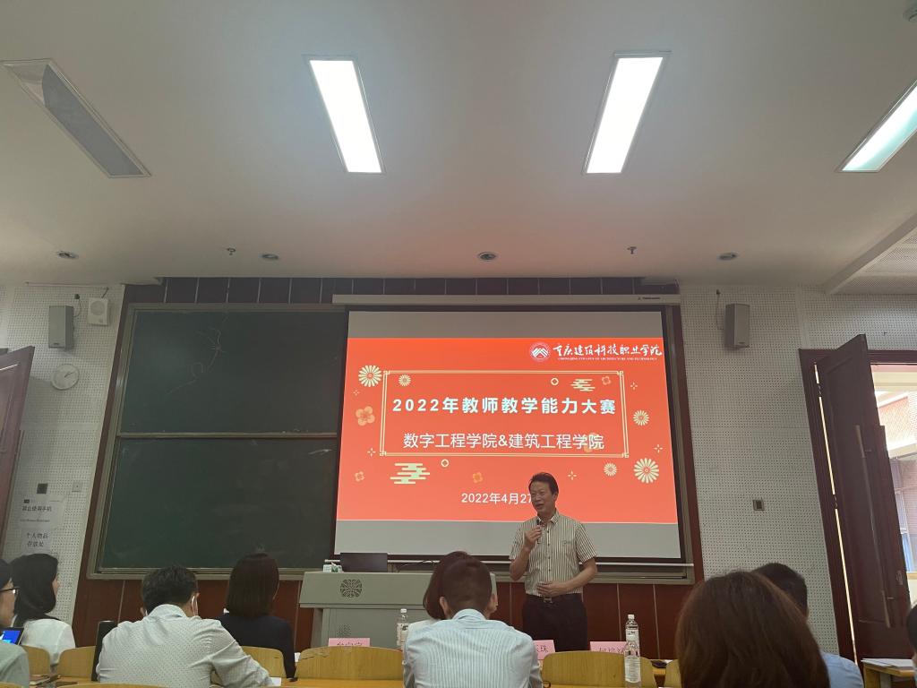 4月27日中午,数字工程学院与建筑工程学院在笃学楼2205教室联袂举办了“2022年教师教学能力技能大赛”。两个学院共选派8支队伍30名教师参加比赛。此次比赛特邀2021年全国教师教学能力大赛一等奖获得者牟向宇教授及其团队成员翟玉珠、郑玲三位专家担任评委并做现场指导,何培斌副校长莅临并致辞,两个学院院长、书记、副院长及全体教师出席大赛。