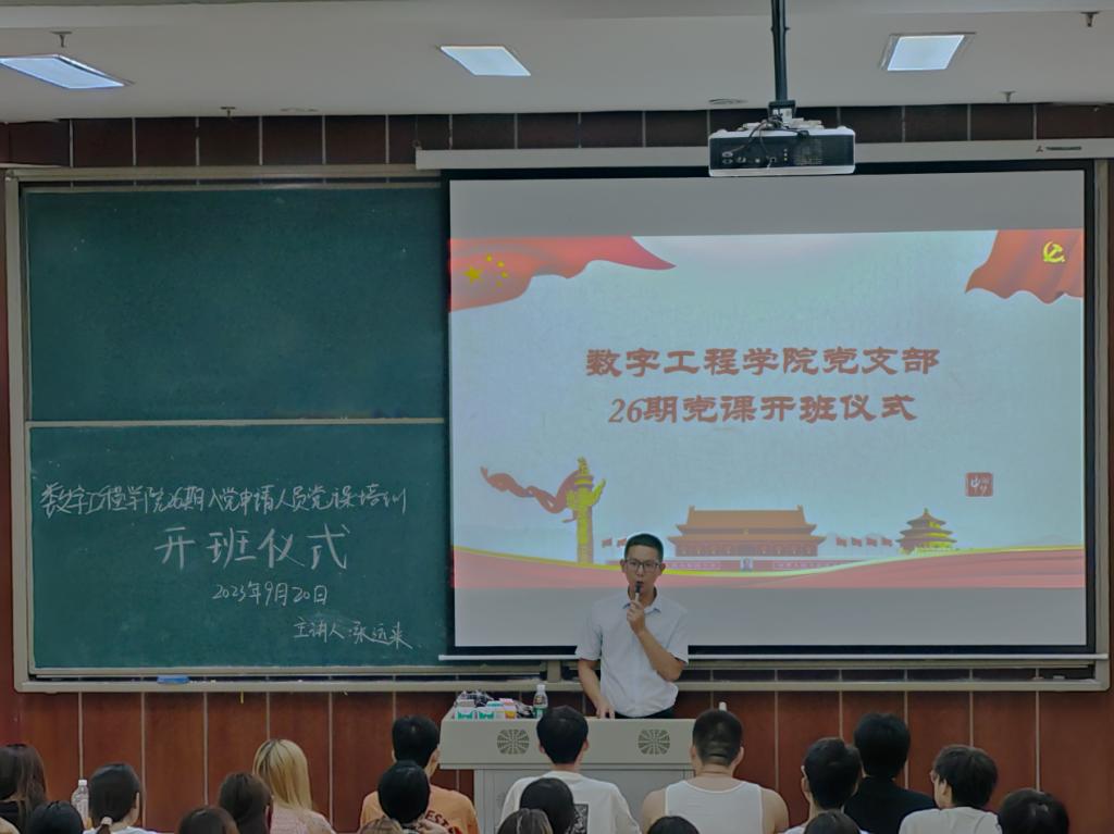 2023年9月20日12:30,数字工程学院党支部党课开班仪式在笃学楼2205顺利举行,本次活动由数字工程学院党支部书记张运来主持。