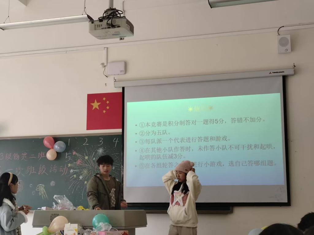 为确保本次活动顺利进行,班长提前一周告知同学们准备本次活动,以确保每个同学都能空出时间参加。同时由文艺委员王树青和宣传委员苏家航准备活动相关流程与活动道具,交由班长审核,告知生活委员支出班费。活动于下午1点开始,首先进行的是双人运气球比赛。同学们以小组为单位,在规定的一分钟内,用除手外的任意部位运送气球。这个比赛既考验了同学们的默契,也锻炼了他们的团队协作能力。是“逛三园”游戏,同学们通过这个游戏增进了彼此的了解,也让整个活动气氛更加活跃。紧接着的“抓鸭子”游戏更是让同学们笑声连连,乐趣无穷。接下来“一起来重庆”的游戏环节,同学们分成两个组,依次起身做出指定动作并说出“大家一起来重庆”“几个人来的”。这个游戏不仅考验了同学们的反应速度,也让他们在游戏中更加深入地了解彼此。在后续的声母游戏,通过拍手打节奏给出mm造词妈妈,同学们开始了他们的名字接力。这个游戏让同学们在重复的陈述中,关注每一个人的名字以及他们的样子,从而快速互相认识。在“有奖竞答”环节中,同学们争先抢答的模样充分展现了新时代大学生勇往直前,有勇有智的新风貌。在“你说口令,我反转”游戏中,主持人发出“稍息”的口令,同学们要做相反的动作,即“立正”姿势;“立正”对应“稍息“向左”对应“向右",“向前"对应“向后"。这个游戏不仅考验了同学们的反应能力,也让整个活动气氛达到了高潮。