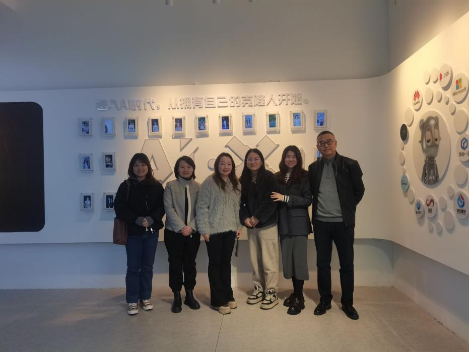 在空间合伙人赵敏女士及空间主理人的热情接待下,学院一行参观并互动体验了空间的AI克隆人、AGI营销、AI智能键盘等AI产品,对其背后的技术原理与应用价值进行了深入了解。