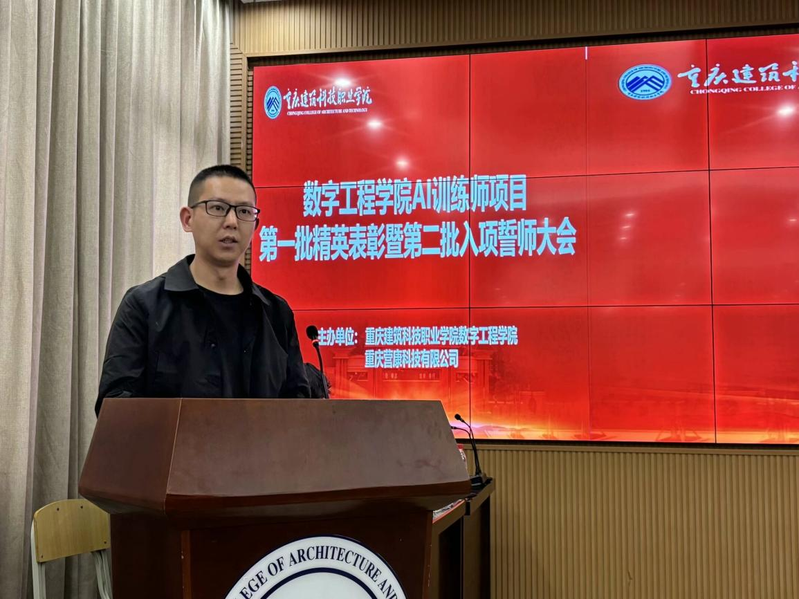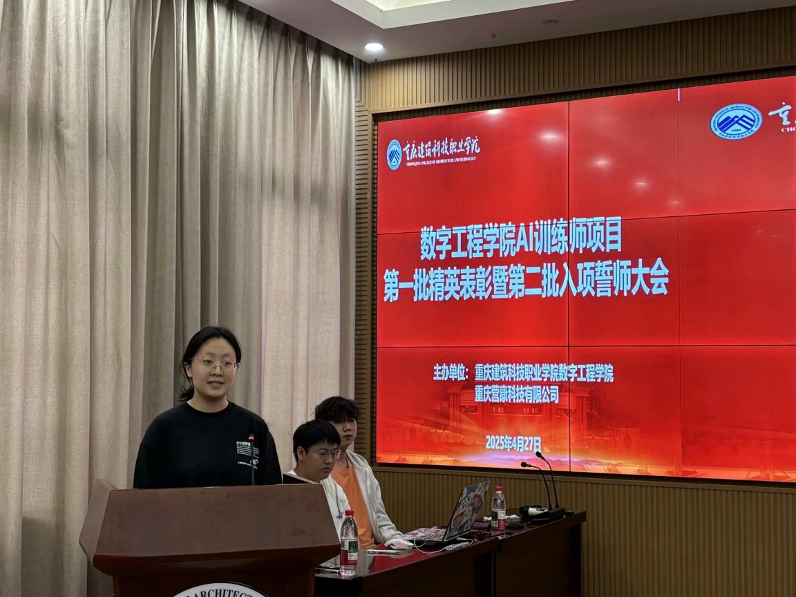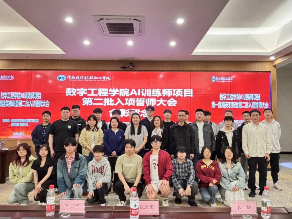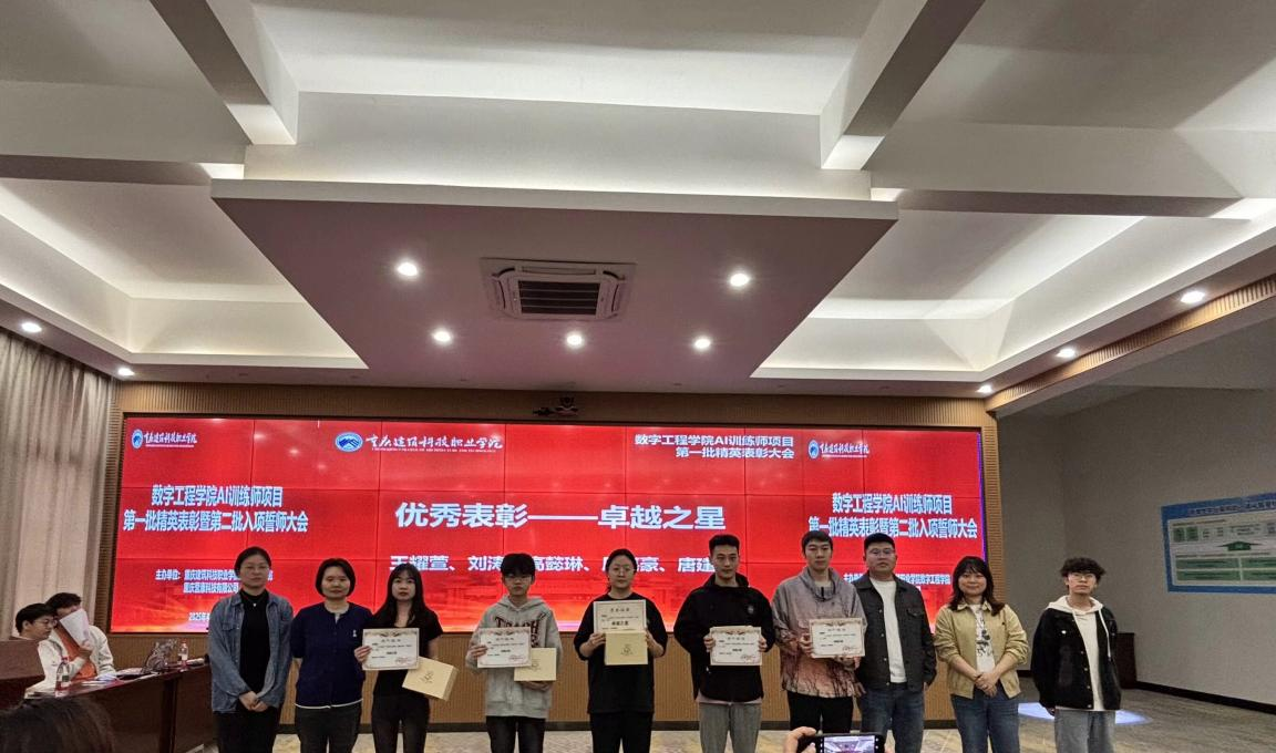 2025年4月27日,数字工程学院在大数据中心隆重举办了AI训练师项目第一批精英表彰暨第二批入项誓师大会。数字工程学院孙二华院长、党支部书记张运来书记、刘亚妮副院长、院长助理潘越老师以及大数据教研室的教师代表,重庆营康科技有限公司HR总监燕霞、项目运营总监段雄和项目驻校负责人周建平出席本次活动。此次活动聚焦AI数据标注生产性实践项目,对在第一批项目中表现突出的个人与团队进行了表彰,并正式启动了第二批AI训练师的培养计划。