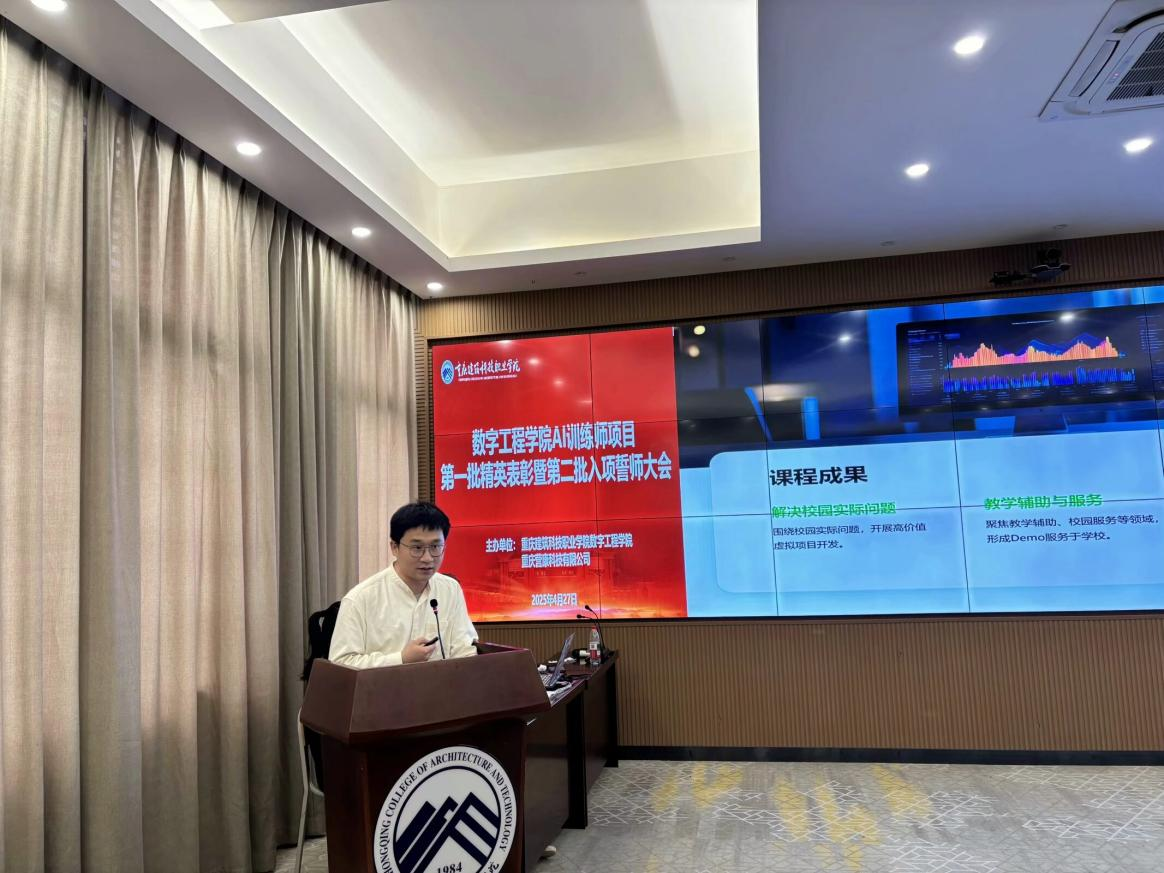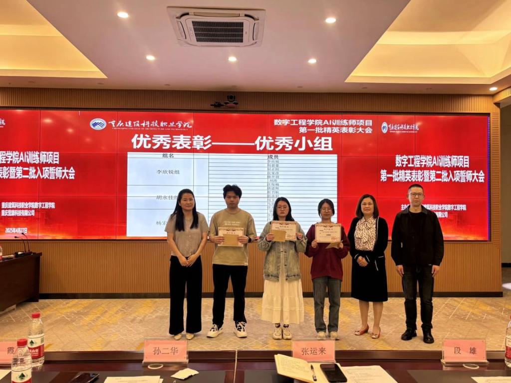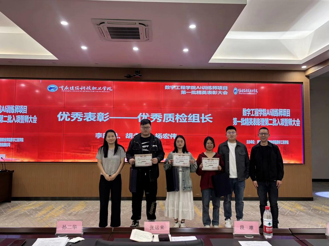 2025年4月27日,数字工程学院在大数据中心隆重举办了AI训练师项目第一批精英表彰暨第二批入项誓师大会。数字工程学院孙二华院长、党支部书记张运来书记、刘亚妮副院长、院长助理潘越老师以及大数据教研室的教师代表,重庆营康科技有限公司HR总监燕霞、项目运营总监段雄和项目驻校负责人周建平出席本次活动。此次活动聚焦AI数据标注生产性实践项目,对在第一批项目中表现突出的个人与团队进行了表彰,并正式启动了第二批AI训练师的培养计划。