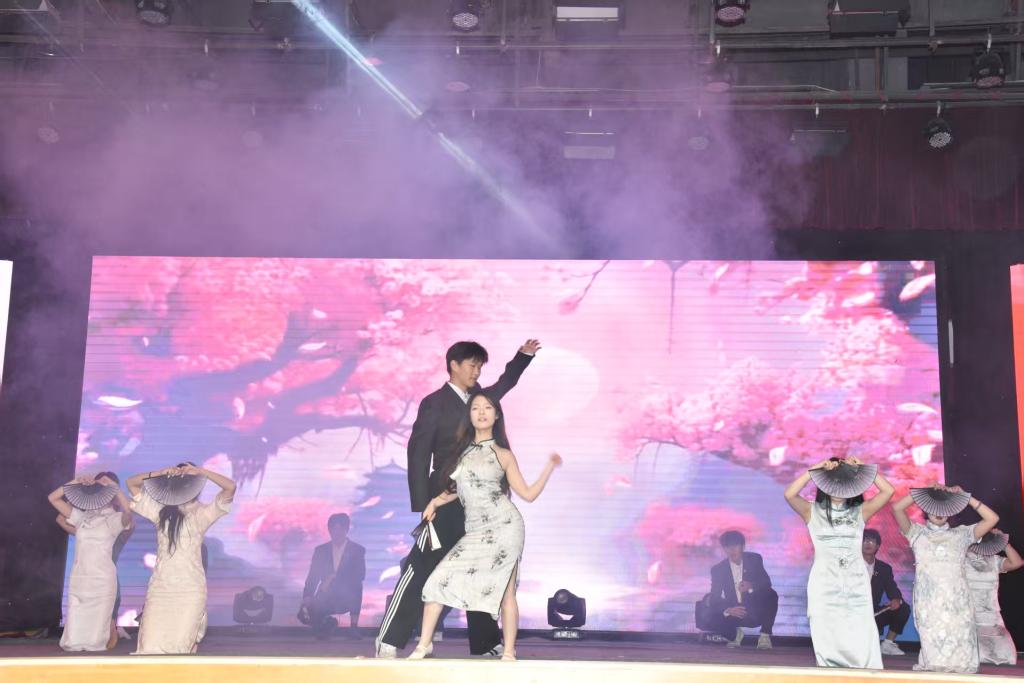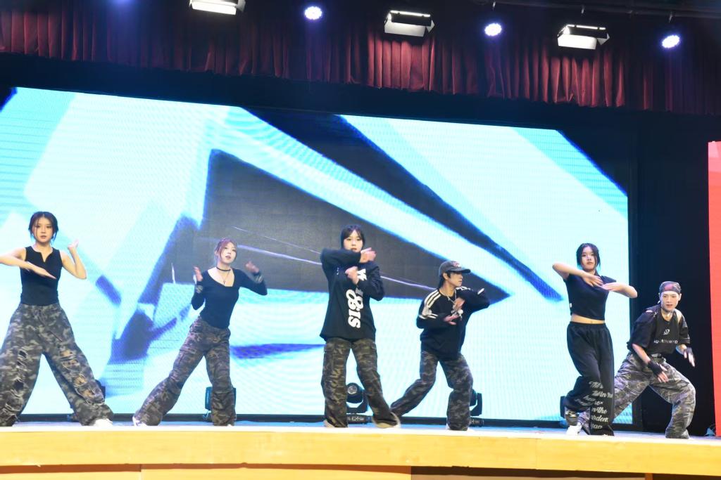 大赛中,各学院舞蹈作品风格多样、精彩纷呈。由智慧商贸学院才艺达人团队特别出演的《808》、《招财猫》等节目用炸裂的节奏、带感的舞步,把青春的张扬与活力展现得淋漓尽致;智能建造学院带来的《bar bar bar》以明快的节奏,“建”证时代的青春朝气;数字艺术学院的《石榴花开》象征着民族团结的美好;智能制造学院的《你要跳舞吗》传递着同学们敢闯敢拼、敢秀敢嗨的青春态度;智慧康养学院的《心尖尖》用温柔灵动的舞姿展现柔情;数字工程学院的《花间酒》则凭借古典国风的独特韵味,成为赛场中令人印象深刻的一抹亮色。此外,学校街舞社以《红岩魂》讲述革命故事、传递初心使命。让我们在舞步中,重温那段峥嵘岁月!