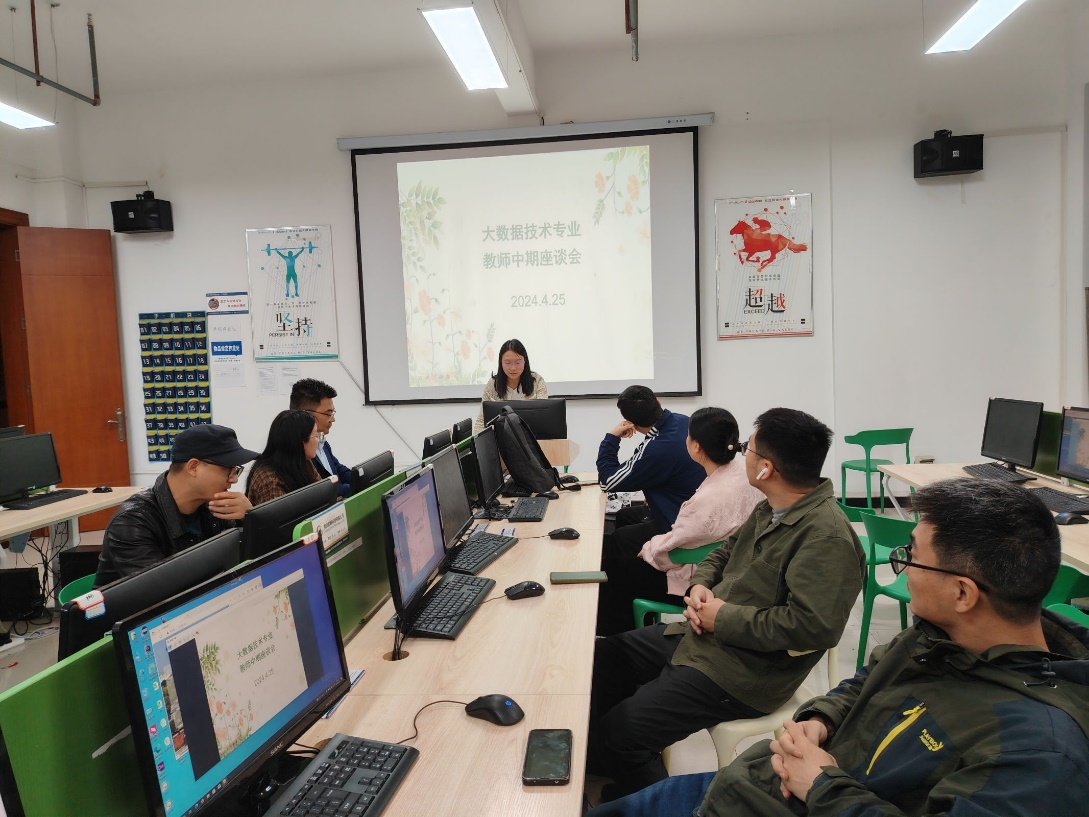 为进一步提高教育教学管理水平,便于专任教师、企业教师和外聘教师之间交流教学心得,及时沟通教学管理中的问题,优化校企合作办学内容,提升校企合作办学质量,在教研室主任廖国敏老师的带领下,大数据技术教研室于2024年4月25日在信息馆X406教室开展了大数据技术专业中期教师座谈会,会议由教研室主任廖国敏老师主持。大数据专业全体专业教师,企业代表方小婷、钟林江、郭恒超,全体外聘教师出席此次座谈会。