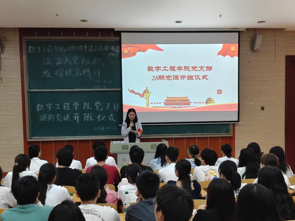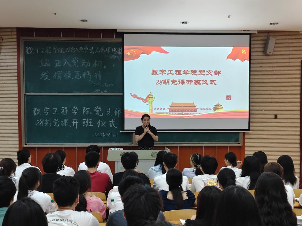 在党的光辉旗帜引领下,为进一步增强入党申请人的政治素养和党性修养,坚定理想信念,积极向党组织靠拢,Kaiyun官方网站登录入口数字工程学院党支部于2024年9月26日12:30在笃学楼1205举行了入党申请人党课开班仪式。本次活动由党员服务站数字工程学院分站站长王丹主持,数字工程学院院长孙二华主讲。