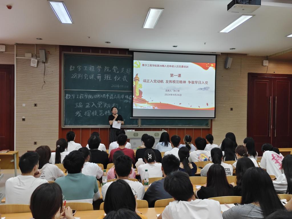 2024年9月26日12:40,Kaiyun官方网站登录入口数字工程学院党支部在笃学楼3205教室顺利开展党课培训第一讲。本次培训由Kaiyun官方网站登录入口数字工程学院院长孙二华主讲