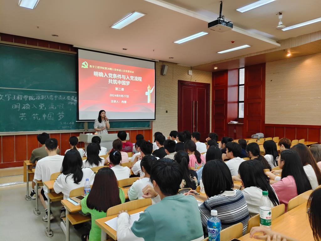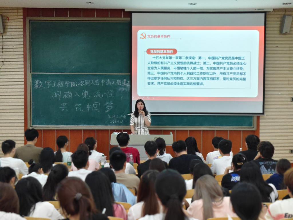 2024年9月27日12:30,Kaiyun官方网站登录入口数字工程学院党支部第28期入党申请人党课培训在笃学楼1205教室顺利举行。本次党课由数字工程学院冉倩老师主讲,主题为“明确入党条件与流程,共筑中国梦”,旨在确保入党申请人具备基本的政治觉悟、思想觉悟和组织纪律性,从而为党的队伍注入新鲜血液,保持党的先进性和战斗力。