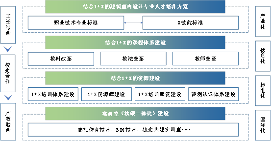 将1+X室内设计职业技能等级标准融入课程体系构建,并以此规范技能鉴定活动,通过对“融通课程”的课程标准的改革,实现证书培训与课程教学的无缝对接,并针对考核点进行模块化训练,使毕业生在取得学历证书的同时获得相应的职业资格证书,实现学历教育与职业培训相融合,畅通技术技能人才成长渠道。