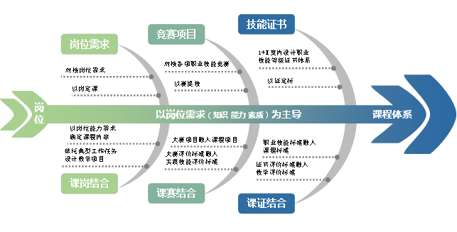 本专业教学采用“岗课赛证融通”培养模式,将企业的工作岗位和职业技能、职业技能等级标准、职业技能竞赛及专业课程体系进行有机地融合,做到“以岗定课、以赛提技、以证定标”,实现各个要素之间相互融通、相互促进。