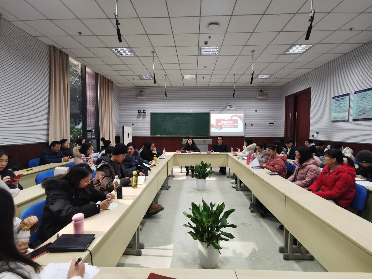 2021年1月15日13:00,我院全体教师在3102教师召开学院寒假工作安排暨新春座谈会,会议由学院院长彭丽莉主持召开。