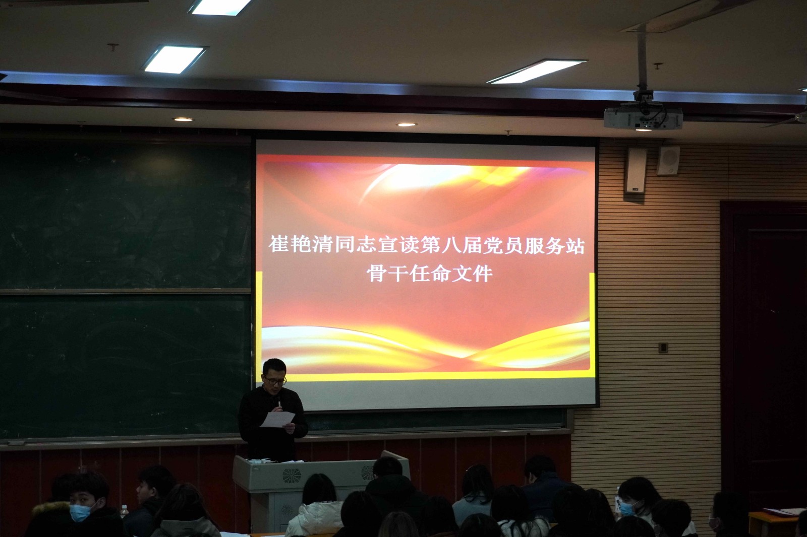 首先,第七届服务站站长程俞淞做工作总结,并由建筑城规学院党支部崔艳清副书记宣读第八届建筑城规学院党员服务站骨干就任名单。