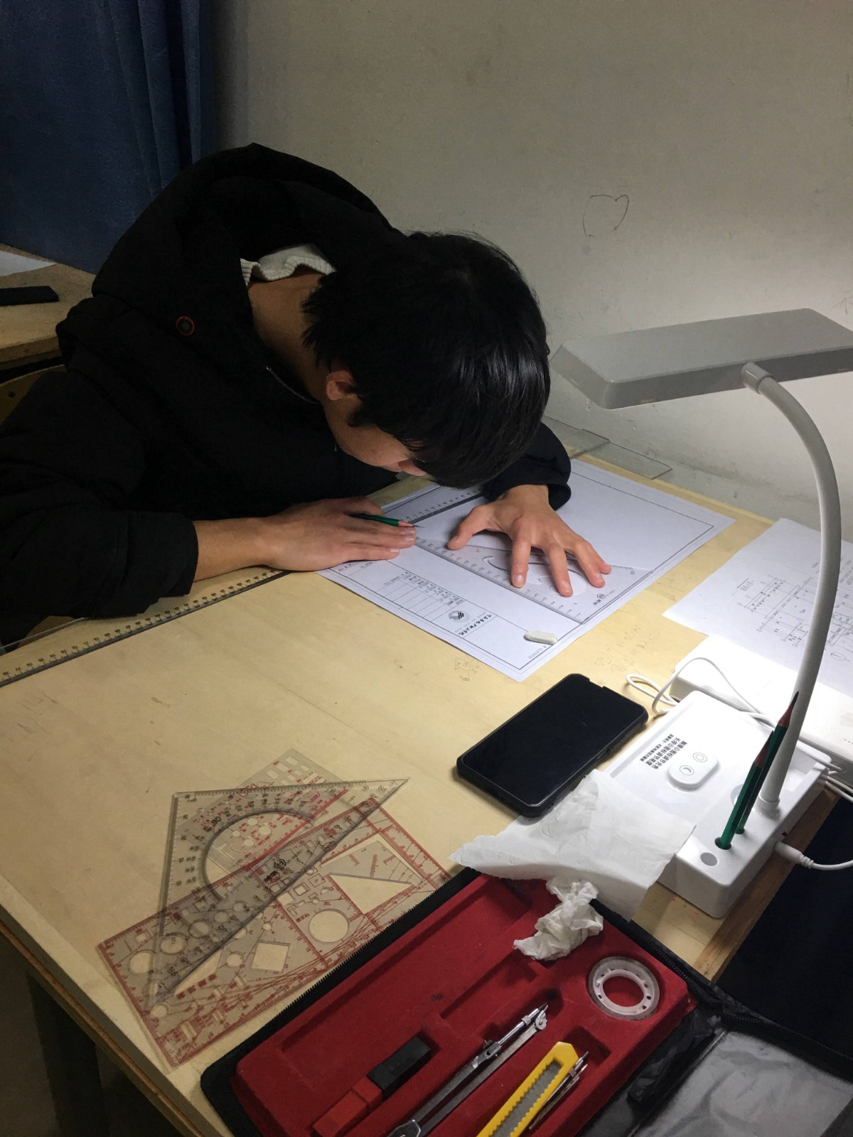 比赛过程中,同学们都十分努力,有的甚至打开了自己带的台灯,准备十分充足,让人感觉经验十足,对比赛胜券在握,在气势上就已经压了别人一头。其他的同学也不甘示弱,都在认真画图。