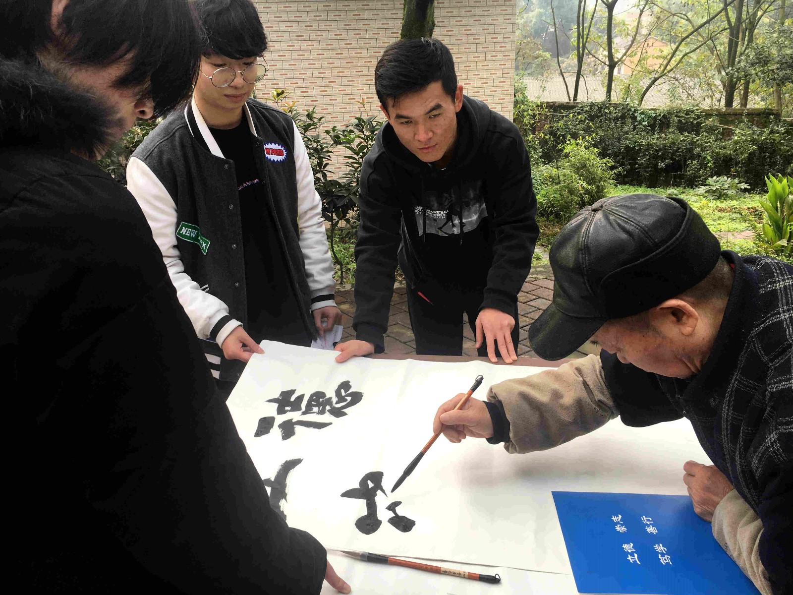 同学们学习书法