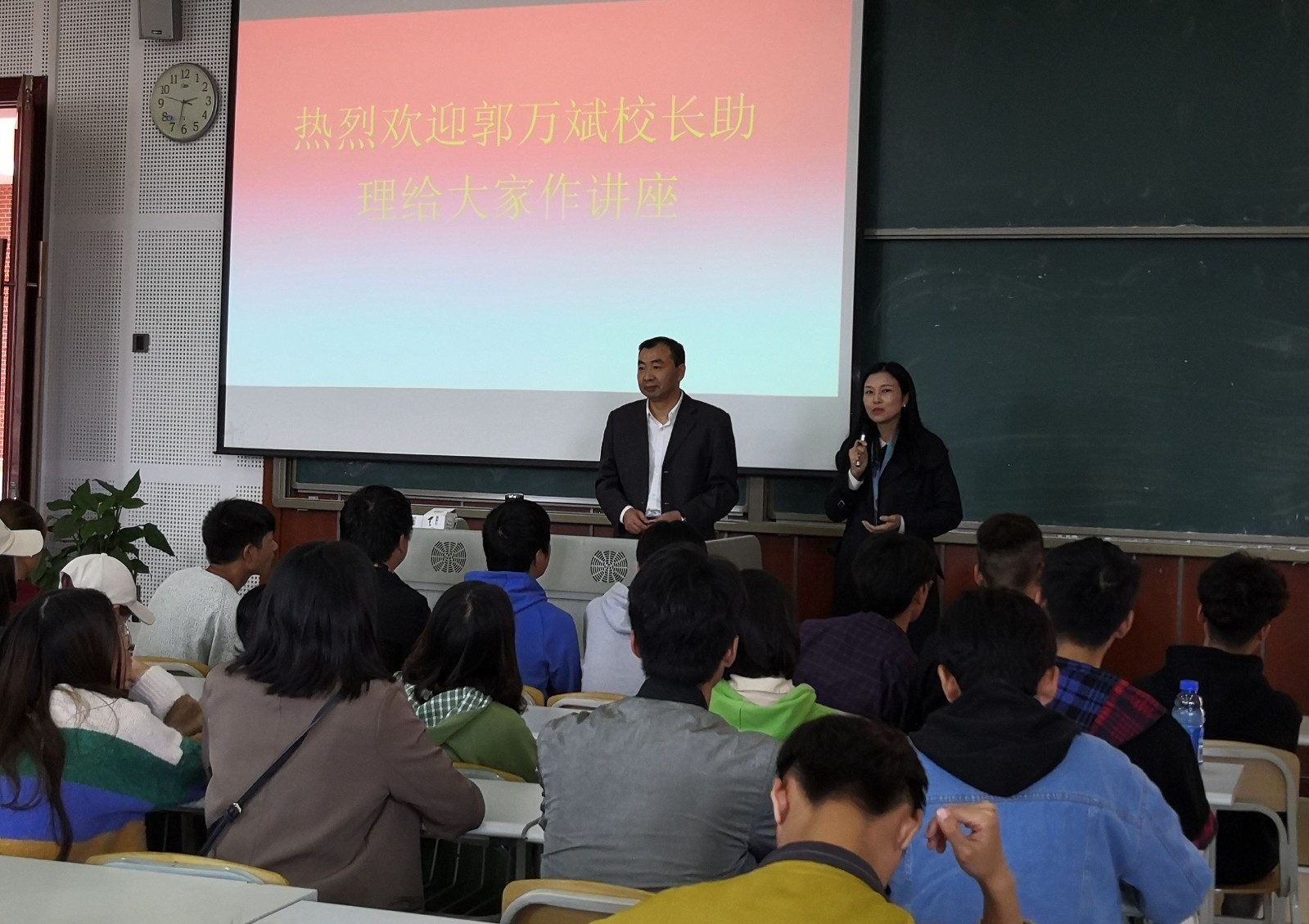 为引领新生做好大学生涯规划,过好大学生活,我院于10月16日,在笃学楼3305教师召开大学生职业生涯规划发展讲座,本次讲座由校长助理郭万斌担任主讲,建筑城规学院副院长彭丽莉,副院长李益,党支部副书记崔艳清,2019级辅导员以及我院2019级学生参加讲座。